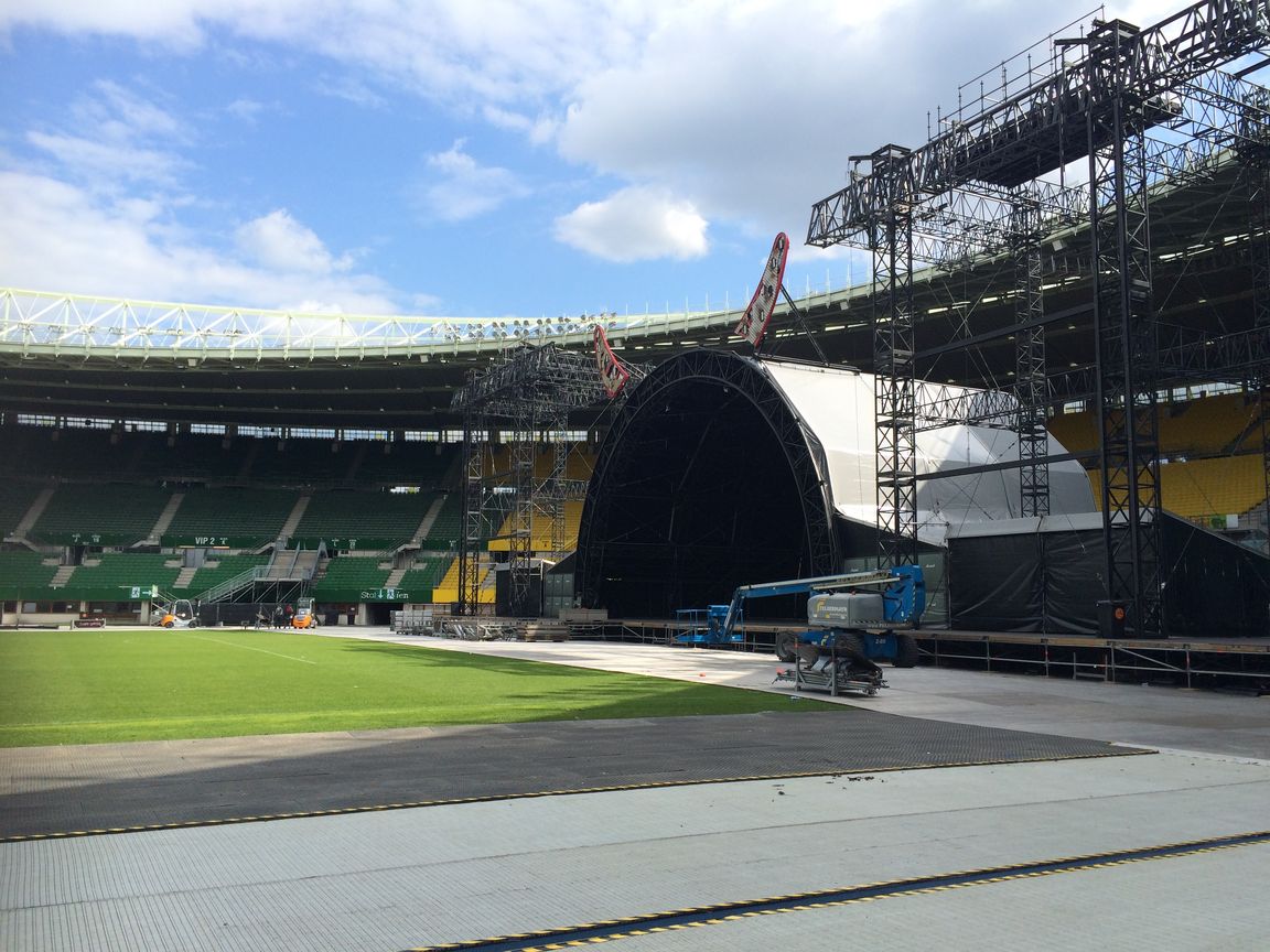 Die Aufbauarbeiten im Ernst Happel Stadion sind in vollem Gange: