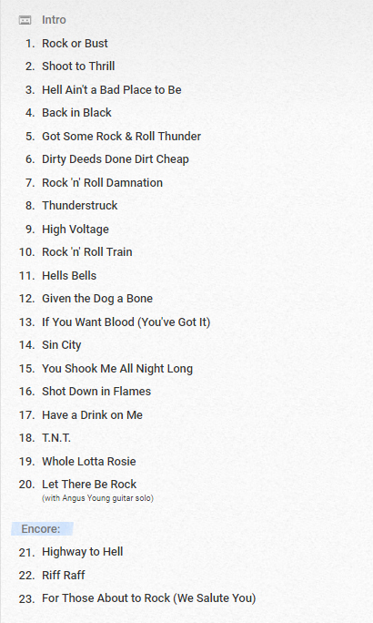 Hier die Setlist vom AC/DC Konzert in Werchter am 16. Mai 2016: