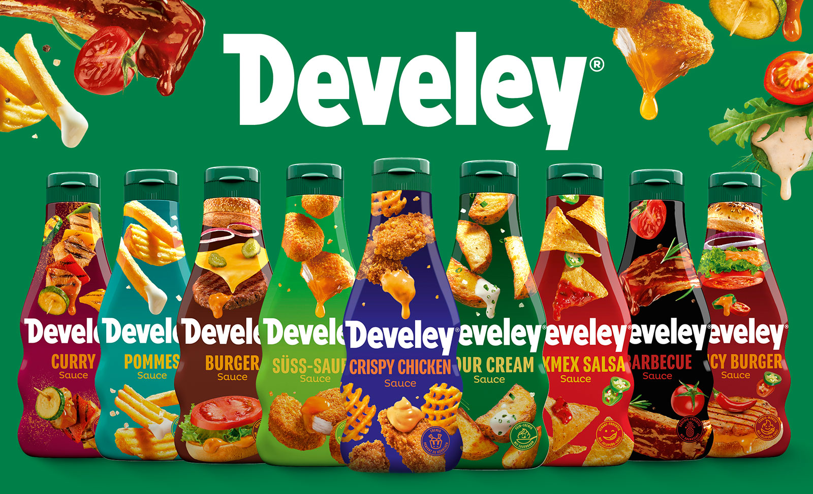 Mit den Geschmacksrichtungen Curry, Pommes, Burger, Süss-Sauer, Crispy Chicken, Sour Cream, Tex Mex Salsa, Barbecue und Spicy Burger bist du für jeden Festivalmoment perfekt ausgestattet. Mach jetzt mit und gewinne mit etwas Glück eines von 5 Develey Saucen-Packages - so schmeckt der Festival-Sommer 2026!